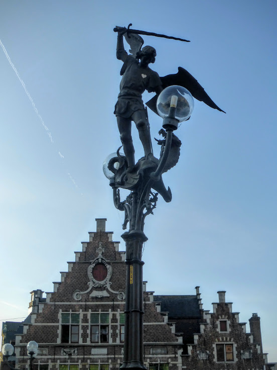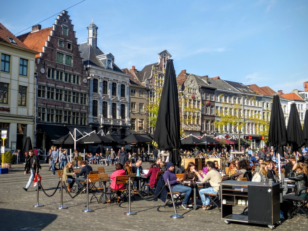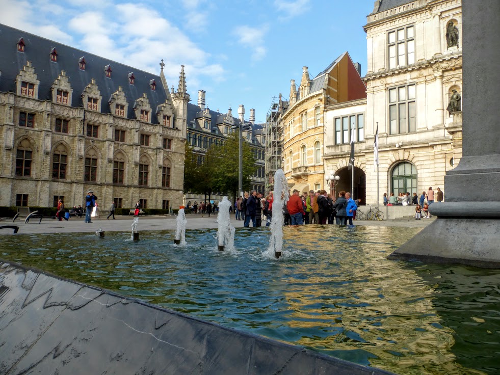 Odwiedziliśmy plac Vrijdagmarkt, który dawniej był miejscem zgromadzeń publicznych i egzekucji. Dziś stoi na nim pomnik Jakoba van Artevelde’a, który był przywódcą cechowym. Podniesiona ręka wskazuje na Anglię, gdyż van Artevelde walczył o jak najlepsze kontakty handlowe z Anglikami.