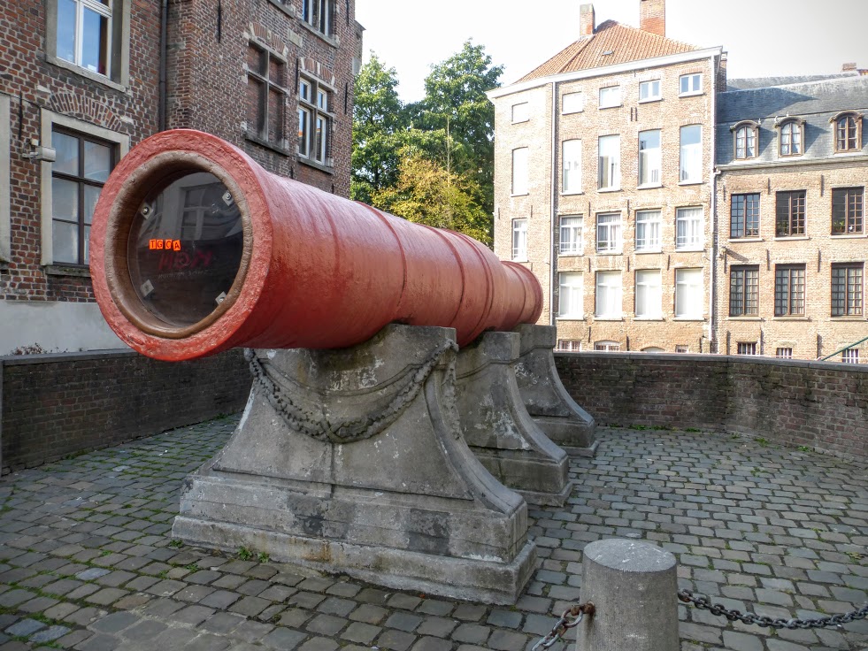Ta przedziwna tuba to najgroźniejsze dzieło oblężnicze z 15 wieku – Dulle Griet, czyli Szalona Małgośka. Niestety coś widocznie poszło nie tak, bo już przy pierwszej próbie jego użycia działo pękło. Do niedawna spełniało ono inną, ważną rolę – stanowiło siedzibę bezdomnych, którzy spali w środku. Teraz to już niemożliwe – otwór został zasłonięty przezroczystą szybą i nikt już nie niepokoi Małgośki.