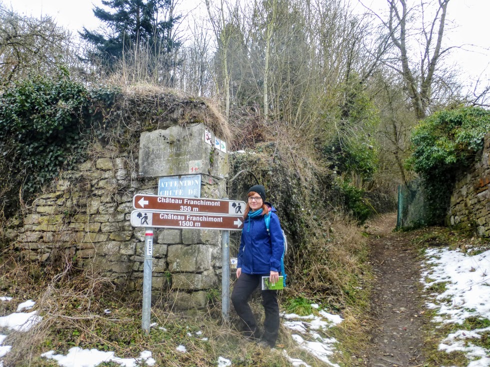 Pierwszym sukcesem było, jak to określiłyśmy, „osiągnięcie początku”, czyli miejsca, w którym rozpoczynała się nasza wycieczka. Jeśli nawet początek trzeba osiągać, to znaczy, że nie jest lekko. Udało nam się odnaleźć nasz punkt wyjścia – Château de Franchimont – średniowieczny zamek z 11 wieku, który pełnił niegdyś ważne funkcje obronne. Osiągnięcie początku tak bardzo nas zmęczyło, że zrobiłyśmy pierwszą przerwę śniadaniową.