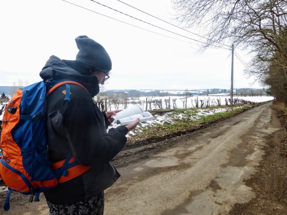 Nasz szlak prowadził trochę przez las, a trochę przez wioski i wioseczki. Cała zabawa polegała przede wszystkim na tym, że opierałyśmy się na opisie trasy zawartym w przewodniku. Czułyśmy się więc trochę jak poszukiwaczki świętego Graala na tropie, podążając za szczegółowymi wytycznymi w języku francuskim, co wymuszało bardzo dokładną obserwację okolicy – wszystkich ścieżek i ścieżynek, słupów telegraficznych, przydrożnych krzyżów i innych punktów orientacyjnych. Niezawodną taktyką w takich sytuacjach jest także tak zwane „domyślanie się”. Ogólnie jednak prowadził nas biało-czerwony szlak, który czasem znikał, ale zazwyczaj jednak pojawiał się z powrotem. Nasza wyprawa była więc prawdziwą biało-czerwoną ekspedycją.
