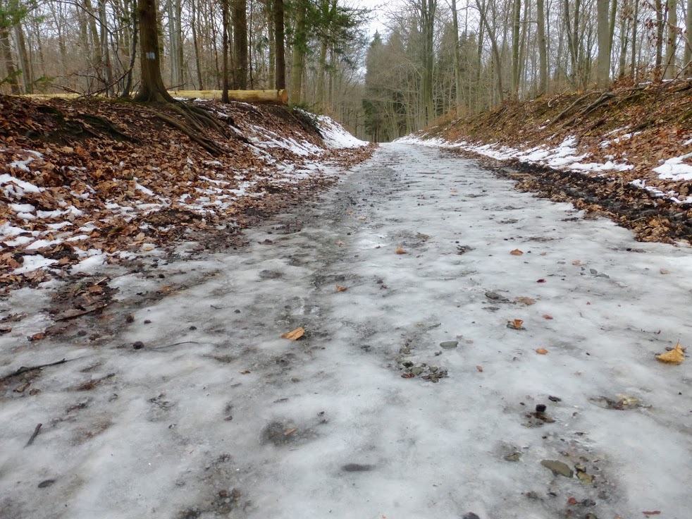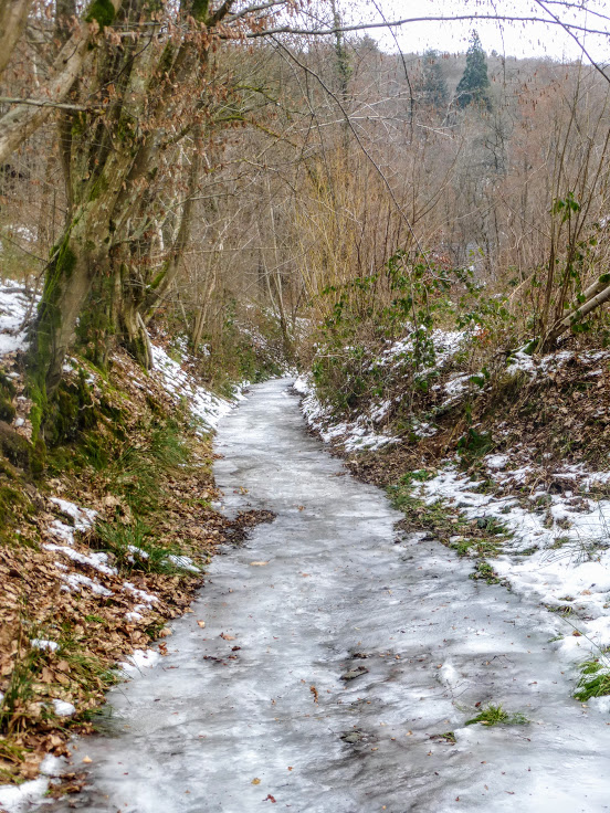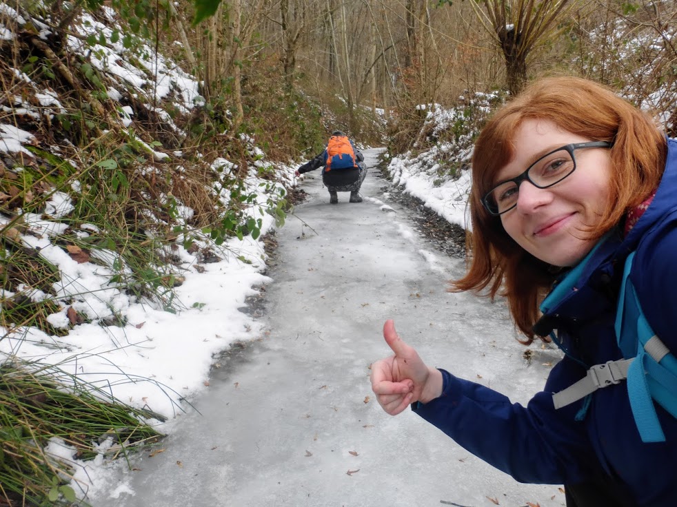Niewątpliwie jednym z ciekawszych wydarzeń był mniej więcej kontrolowany zjazd oblodzoną ścieżką. Jak się okazało, Zuza posiada świetną technikę w tego typu aktywnościach. Oblodzone szlaki towarzyszyły nam w ogóle dość często.