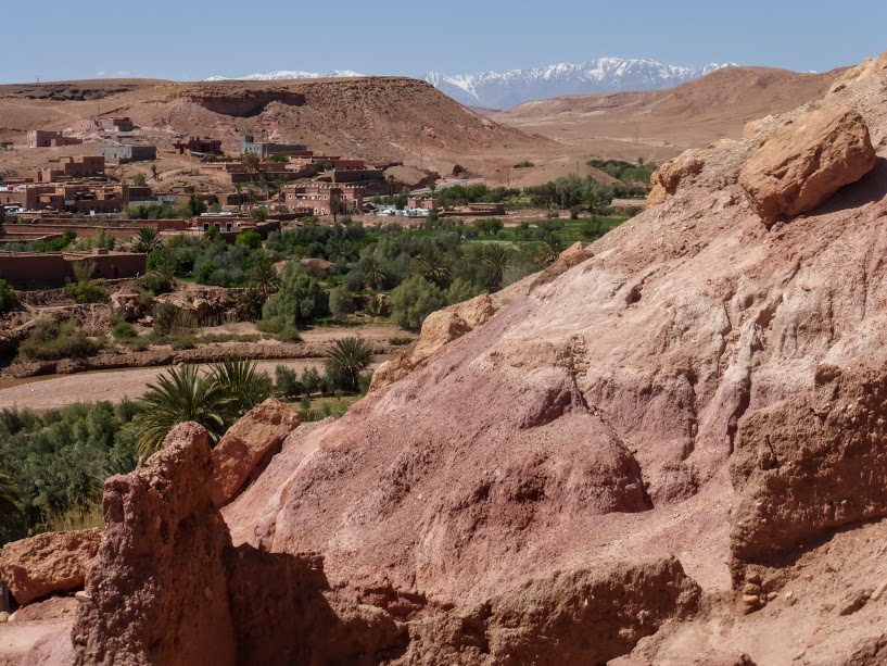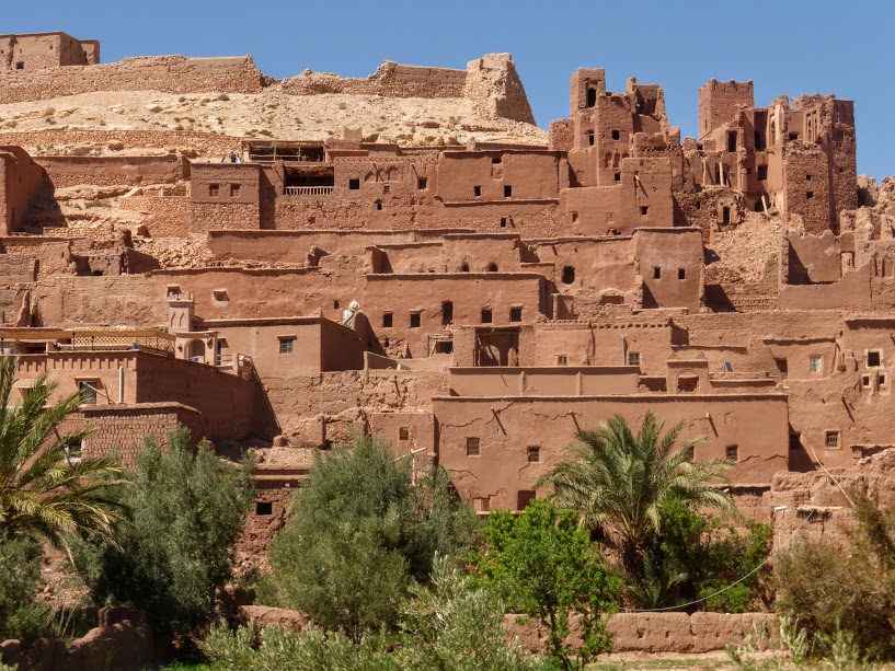Po pewnym czasie dojechaliśmy do Ajt Bin Haddu, obronnej wsi (ksaru) położonej niedaleko Ouarzazate. Założono ją w XI wieku przy ważnym szlaku handlowym, dziś turyści przybywają tu głównie dlatego, bo jest to miejsce, w którym kręcono m.in. Gladiatora (co jest podkreślane przy każdej możliwej okazji). Miasteczko jest wpisane na listę UNESCO. Zwiedzamy je z przewodnikiem (dodatkowa opłata: 40 dirhamów, ok. 16 zł), przechodzimy szybki kurs wiązania chusty na głowie (w ten sposób przewodnik próbuje zachęcić do kupienia chusty berberyjskiej u znajomego sprzedawcy), a potem jemy obiad (płacimy za niego dodatkowo).