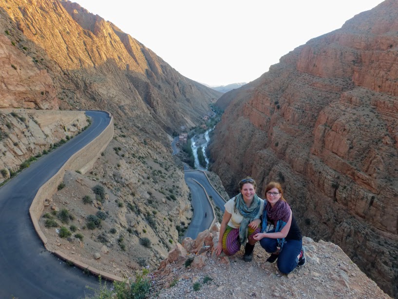 Słońce wyraźnie się obniżało, a my pod koniec dnia dotarliśmy do wąwozu Dades. I tu znów mamy to, co najlepsze – skaliste kaniony i górskie serpentyny. Nasza obecność w wąwozie była niestety właściwie symboliczna – zatrzymaliśmy się po prostu w jednym miejscu na zdjęcia, choć samo podziwianie otoczenia z busa też było nie lada atrakcją. Mimo wszystko aż się prosi o jakiś trekking w tym miejscu. Może kiedyś…