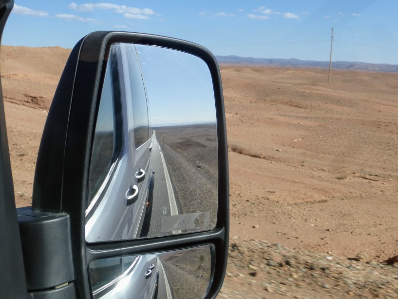Ruszamy dalej – krajobrazy zmieniają się na bardziej pustynne, a my przesiadamy się na przednie siedzenia, obok kierowcy i czujemy się jak władcy szos!