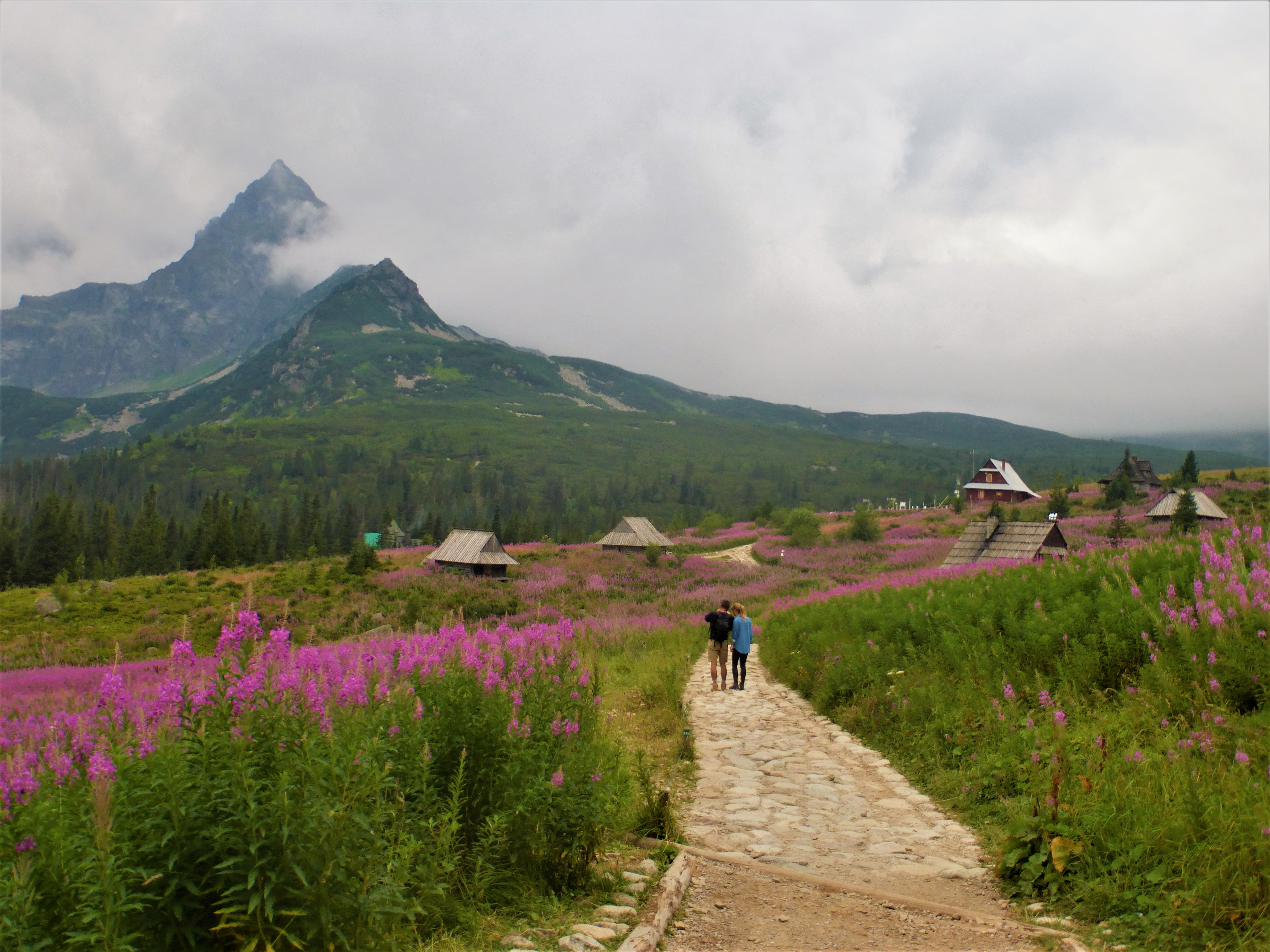 Na szlak wyruszyłyśmy o godz. 6.30, wybierając drogę wiodącą z Kuźnic przez Boczań. Tego dnia prognozy pogody nie były rewelacyjne – miało być pochmurnie, a po południu zapowiadano deszcz. To nawet lepiej – pomyślałam. Będzie większa motywacja, żeby iść szybciej. Na szlaku spotykałyśmy pojedyncze osoby, w tym Węgrów, którzy planowali jakąś nieziemską ekspedycję przez Zawrat, Szpiglasową Przełęcz i Rysy aż do Starego Smokowca. Jedną z wielu korzyści, jakie wyniosłam z mojego wolontariatu międzynarodowego w Brukseli, było poznanie kilku węgierskich słówek. Wymieniliśmy więc polsko-węgierskie uprzejmości, niemiłosiernie kalecząc wzajemnie swoje języki. Wkrótce Węgrzy pobiegli żwawo przed siebie, a my statecznym tempem doczłapałyśmy się do Hali Gąsienicowej.