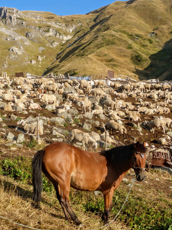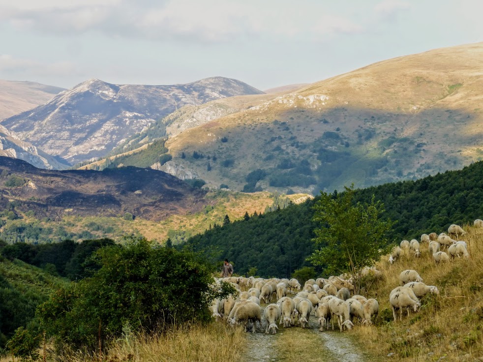 Po drodze minęłyśmy chatkę pasterza wraz z całym inwentarzem. Miły gospodarz wskazał nam, gdzie przebiega szlak, bo pogubiłyśmy się trochę wśród krów i przy akompaniamencie owczych dzwonków kontynuowałyśmy naszą wędrówkę. Szlak na Korab oznakowany jest bardzo dobrze. Wierzcie mi, że niejeden szlak w życiu zgubiłam, ale zgubienie szlaku na Korab jest dużym osiągnięciem (no dobra, przy słonecznej pogodzie. We mgle pewnie wygląda to nieco inaczej…). Droga jest bardzo przyjemna – poza kilkoma ostrzejszymi fragmentami, idziemy dość łagodnie pod górę. Momentami robi się nawet płasko.