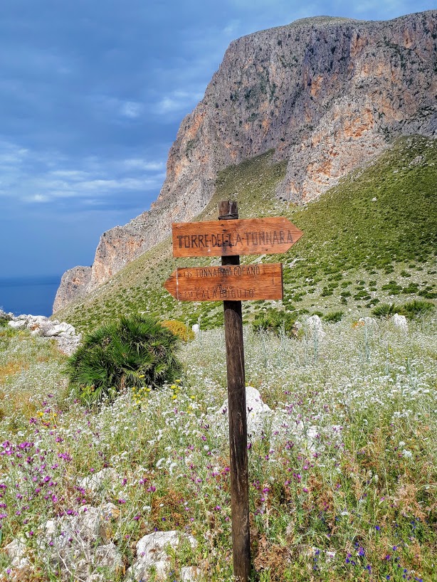Na terenie góry utworzono rezerwat przyrody Monte Cofano – spotkać tu możemy m.in. rzadkie gatunki ptaków i roślin. Ja do ptaków i roślin nic nie mam, ale szukam raczej solidnej porcji mozołu 🙂 Wszystko wskazuje na to, że jestem w dobrym miejscu. Pobieżna lektura blogów i informacji o szlaku na Monte Cofano powoduje nawet, że miny trochę nam rzedną. Czytamy, że to szlak dla osób doświadczonych, że podczas wspinaczki trzeba użyć umocowanej na szlaku liny, że to szlak „ekstremalnie niebezpieczny i wymagający”. Znajdujemy też dramatyczną relację pełną „potu, łez, strachu, bólu, adrenaliny, radości i oszałamiających widoków”. No nieźle – teraz już nie jestem tak pewna, czy chcę tam iść. Z mozołem się jednak nie dyskutuje, postanawiamy spróbować, a w przypadku napotkania jakichś nadludzkich trudności – po prostu zawrócić. Spodziewam się trudności w stylu tatrzańskich Granatów, Świnicy czy Kościelca, adrenalina przyjemnie buzuje we krwi, choć jest też nutka niepewności. Cóż, po prostu tam chodźmy i sprawdźmy, na ile nas stać 🙂