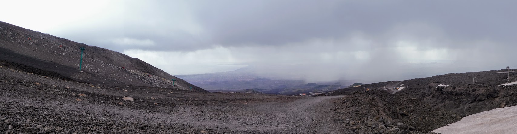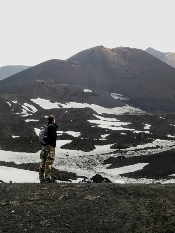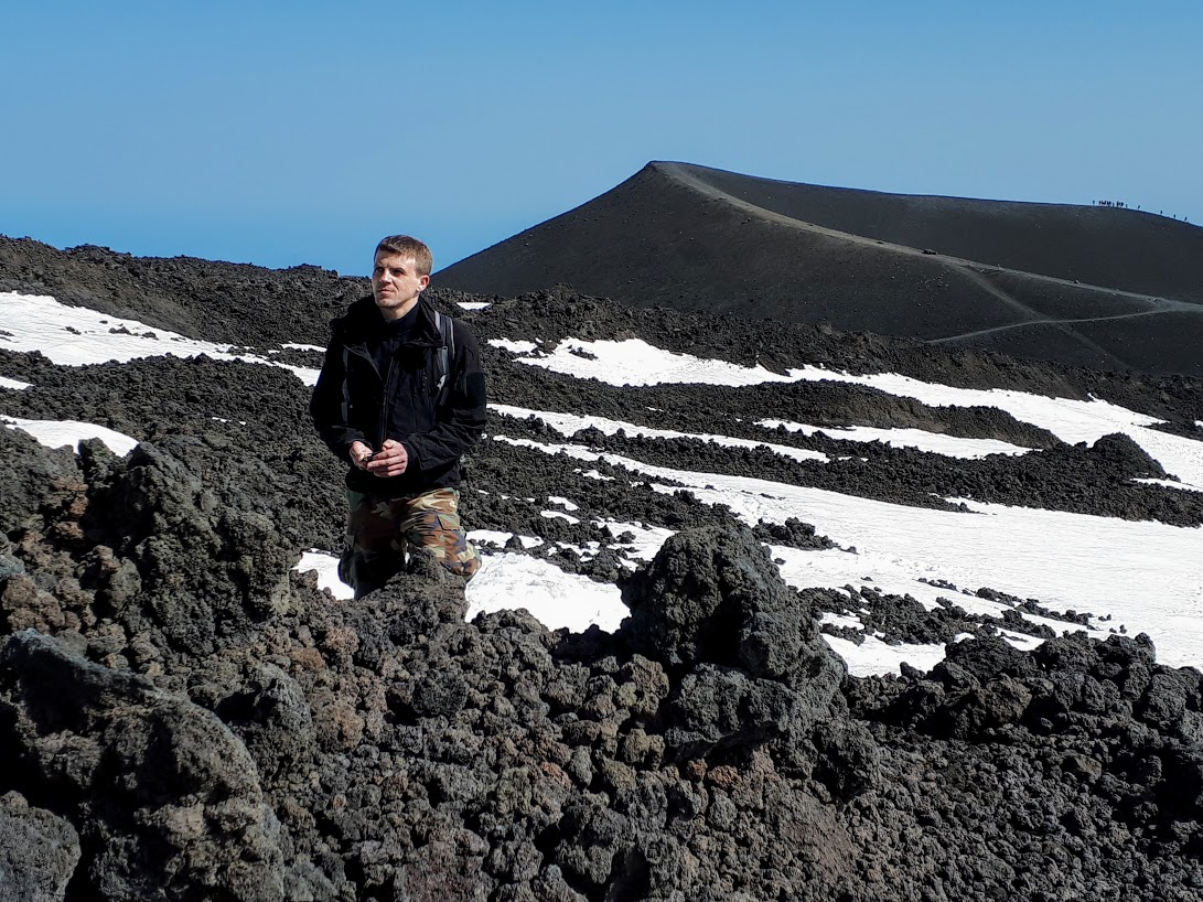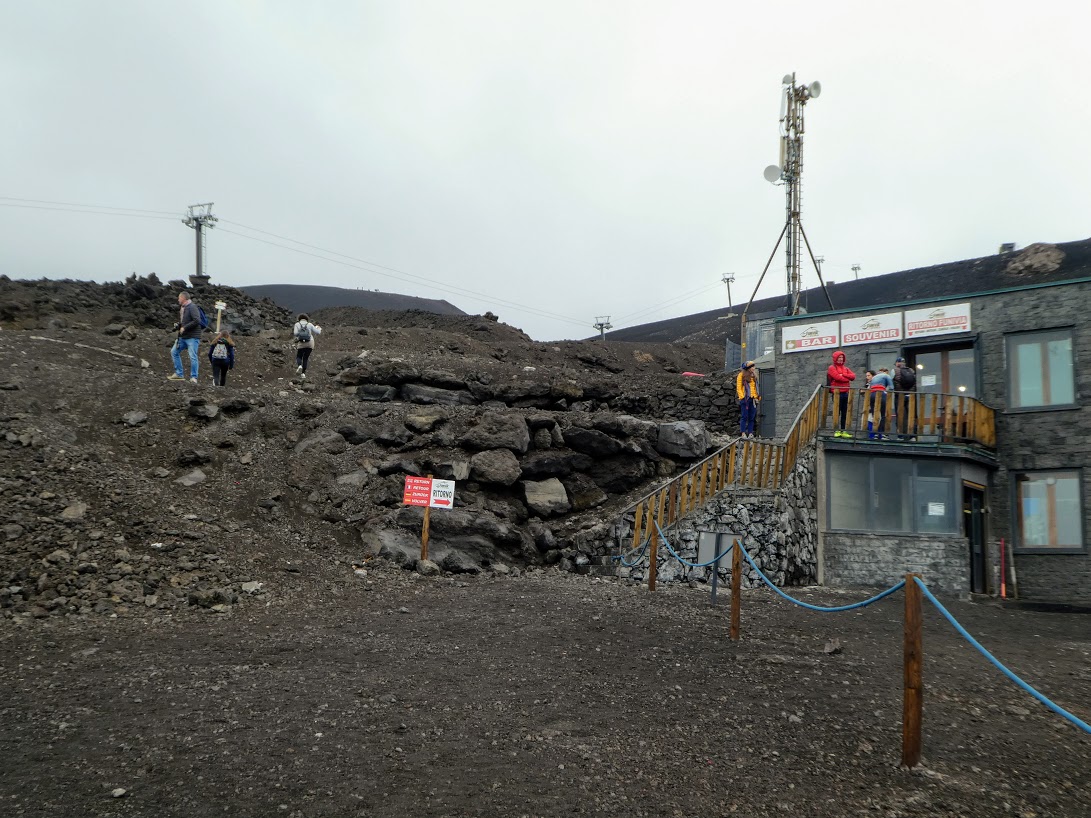 Około 13.00 dochodzimy na płaskowyż Torre del Filosofo – to miejsce, do którego można dojechać autobusem, a także najdalszy punkt dostępny dla indywidualnych turystów. Dojście pod kratery centralne powinno odbywać się pod opieką licencjonowanego przewodnika. Pamiętajmy, że Etna to aktywny wulkan, a łażenie po aktywnych wulkanach niesie ze sobą pewien ładunek ryzyka. Zawsze jednak znajdą się turyści, którzy będą próbować szczęścia – my także chcieliśmy dotrzeć pod kratery centralne Etny.