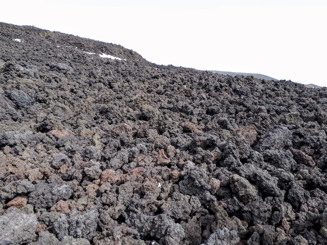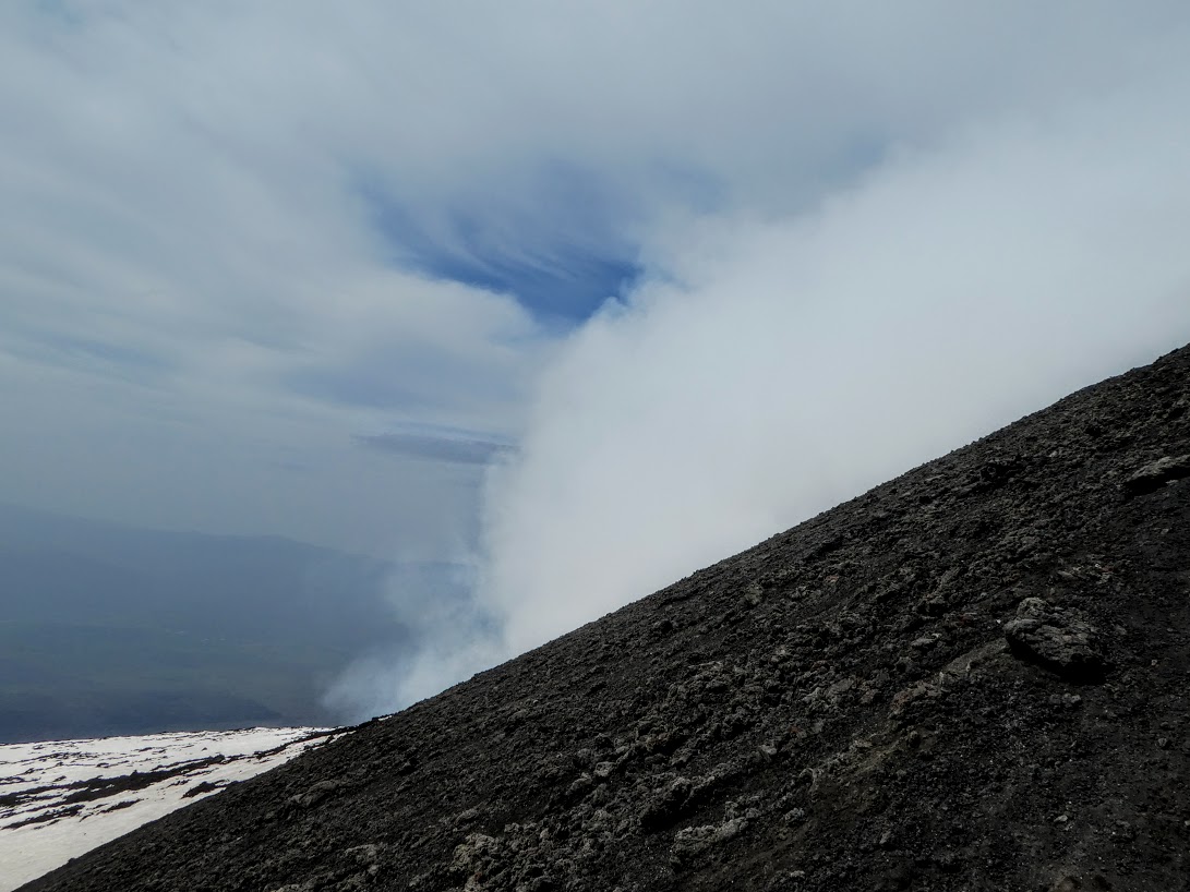 Nie wiem, czy to ze względu na wysokość, przebytą już drogę czy wulkaniczne wyziewy, ale było mi na tej Etnie bardzo źle, zwłaszcza powyżej 2900 m.n.p.m. Dreptałam sobie w swoim mozolnym (oczywiście!) tempie i czułam, że sił jakoś brak. Powinnam być w sumie w swoim żywiole – umordowana, na wulkanie, na dodatek tam, gdzie właściwie nie bardzo można. Ale byłam zbyt zmęczona, aby celebrować piękne, mozolne okoliczności, w jakich się znalazłam. Oj, dała mi ta Etna w kość!