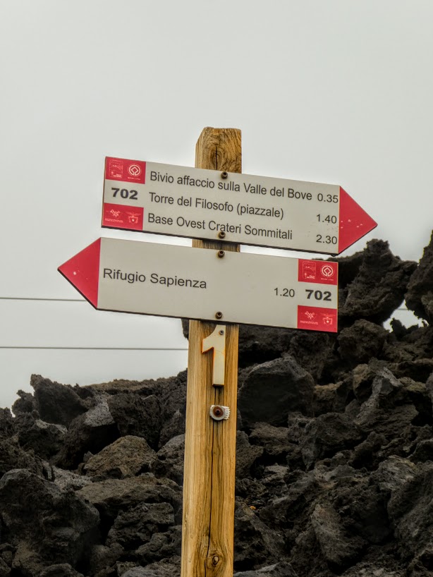 Indywidualni turyści mogą wejść na Etnę do wysokości 2929 m.n.p.m. (Torre del Filosofo), dalej powinien towarzyszyć nam licencjonowany przewodnik. My zdecydowaliśmy się spróbować bez przewodnika (nie byliśmy jedyni). Po drodze mijaliśmy grupę prowadzoną przez przewodnika, który upomniał nas, że nie powinno nas tu być. Czy da się wejść na Etnę bez przewodnika? Na pewno się da. Czy to bezpieczne? Nie wiem, pewnie nie do końca. Wybór należy do Was.