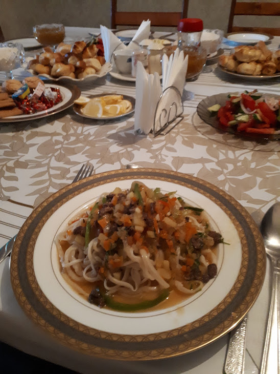 nocleg w Basshi ze śniadaniem i obiadokolacją – 4000 tenge/os (ok. 40 zł)