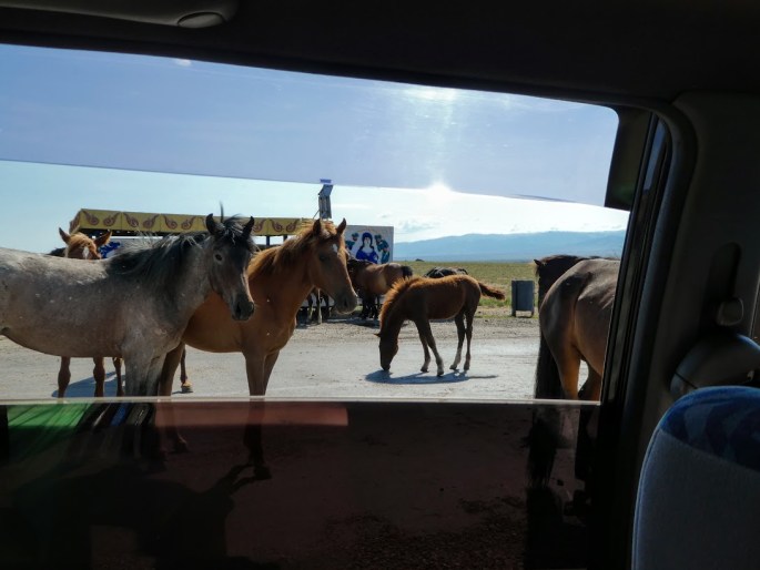 Przejazd z kanionu Szaryńskiego nad jeziora Kolsai zajmuje nam około 3 godzin (wliczając czas potrzebny na powrót do kanionu po aparat fotograficzny zostawiony przez jedną z nas… ;). Nie nudzimy się jednak ani trochę, bo widoki są przepiękne, a poza tym trzeba uważać na hasające po drodze owce i inne zwierzaki.
