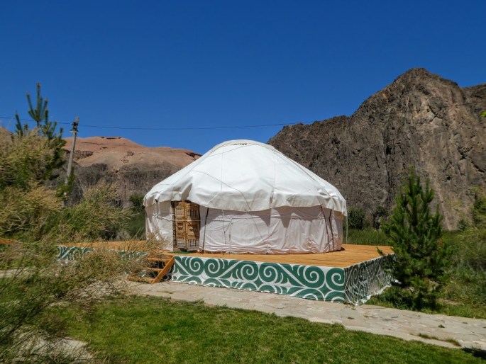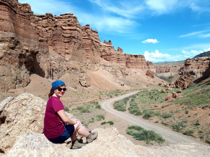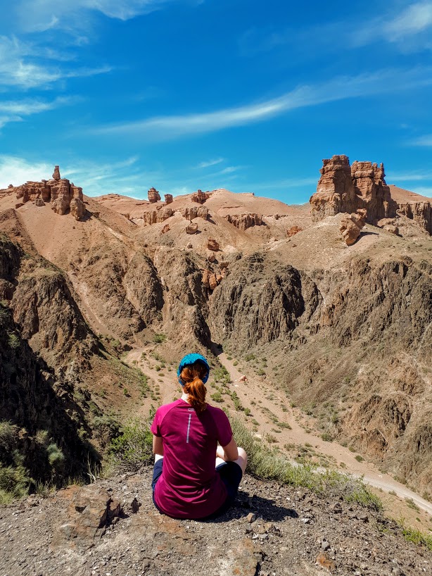 Kanion Szaryński daje duże możliwości pod względem mozołu. Poza prostym spacerem nad rzekę Szaryn, można na przykład do woli łazić po skałach i skałkach, odkrywać coraz to nowe ścieżki i podziwiać kanion z różnych perspektyw. Oczywiście skorzystałyśmy z tej opcji i prawie wyplułyśmy płuca wdrapując się w upale na górę. Na końcu Doliny Zamków znajduje się cywilizacja – jest tam bar, można wynająć jurtę (koszt: w przeliczeniu 450 zł za noc) lub bungalow. Kiedy szykowałyśmy się do podróży, wszyscy uprzedzali nas, że tu jest dzicz, więc trzeba zabrać swoje jedzenie i dużo wody do picia. Tymczasem z głośników w barze płynęło Despacito, a kiedy zapytałam, czy mogę zajrzeć do jurty, usłyszałam, że oczywiście, ale za opłatą. Masowa turystyka, choć na razie zaledwie próbuje być masowa, ale dociera i do Kazachstanu.