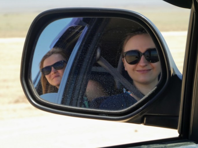 Zastanawiałyśmy się, gdzie rozbić namioty – czy zrobić to na dnie kanionu czy gdzieś na górze. Wygrała opcja „góry”, gdyż chciałyśmy mieć lepszy widok na zachodzące i wschodzące słońce. Owszem, przeszła nam gdzieś tam przez głowę myśl, że na górze może trochę wiać, ale postanowiłyśmy ją zignorować. No i wyobraźcie sobie, że w nocy wiało i to dość konkretnie. Na dodatek w oddali przez pół nocy się błyskało, a my miałyśmy już całkiem precyzyjną wizję nawałnicy, która już za chwilę przetoczy się nad naszymi głowami. Co prawda jakieś 15 minut drogi od naszych namiotów stał zaparkowany samochód z naszym kierowcą, Nurzhanem, ale przyznaję, że nakręciłyśmy spiralę paranoi w sposób wzorcowy. Na dodatek jedna z nas zidentyfikowała dziwne zwierzę siedzące w pobliżu namiotów (o czym poinformowała nas jednak dopiero nad ranem). Prawda jest taka, że w trakcie tej mojej wymarzonej nocy w kanionie Szaryńskim prawie nie zmrużyłam oka i rano wstałam totalnie zmaltretowana (w sumie wszystkie wstałyśmy). Zadziwiająco sprawnie ogarnęłyśmy namioty, zjadłyśmy śniadanie i ruszyłyśmy do samochodu, bo kolejnym przystankiem w trakcie kazachskich mozołów miały być jeziora Kolsai.