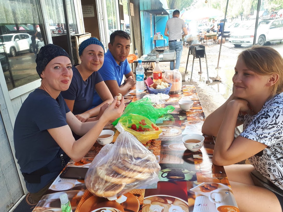 Z naszym kierowcą Nurzhanem. Jak zwykle czymś się zażeramy.