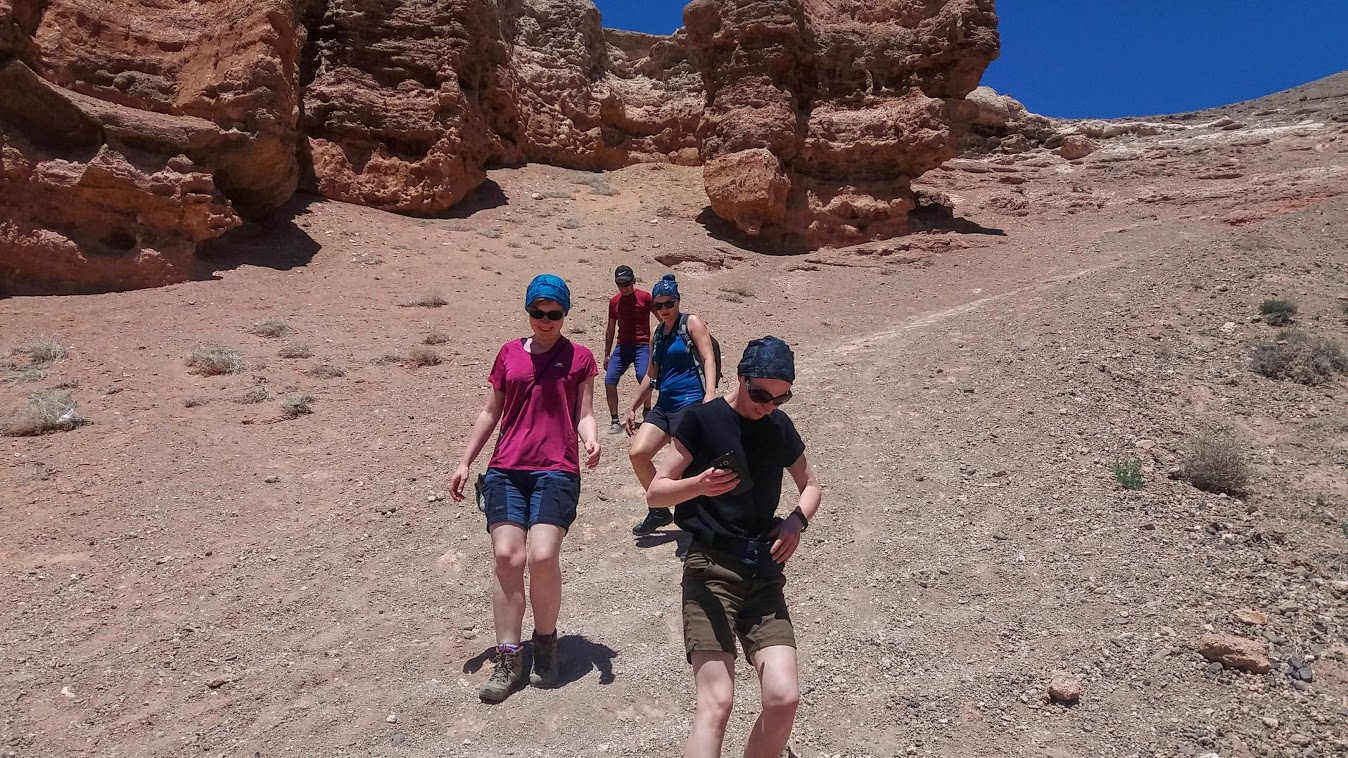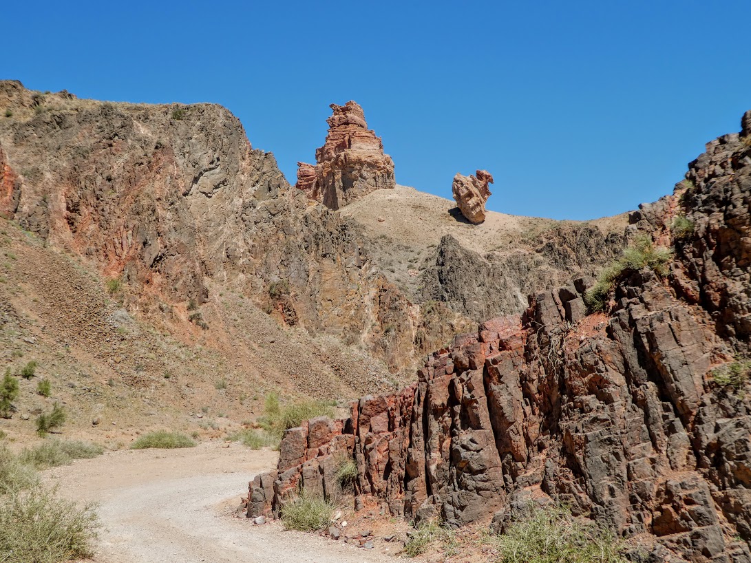 Kanion Szaryński daje duże możliwości pod względem mozołu. Poza prostym spacerem nad rzekę Szaryn, można na przykład do woli łazić po skałach i skałkach, odkrywać coraz to nowe ścieżki i podziwiać kanion z różnych perspektyw. Oczywiście skorzystałyśmy z tej opcji i prawie wyplułyśmy płuca wdrapując się w upale na górę. Na końcu Doliny Zamków znajduje się cywilizacja – jest tam bar, można wynająć jurtę (koszt: w przeliczeniu 450 zł za noc) lub bungalow. Kiedy szykowałyśmy się do podróży, wszyscy uprzedzali nas, że tu jest dzicz, więc trzeba zabrać swoje jedzenie i dużo wody do picia. Tymczasem z głośników w barze płynęło Despacito, a kiedy zapytałam, czy mogę zajrzeć do jurty, usłyszałam, że oczywiście, ale za opłatą. Masowa turystyka, choć na razie zaledwie próbuje być masowa, ale dociera i do Kazachstanu.