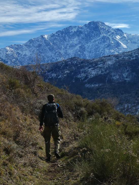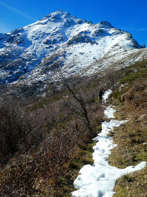 Odczekaliśmy półtora miesiąca i pod koniec marca wróciliśmy na pagór, który nie chciał dopuścić nas do szczytu. Tym razem wybraliśmy inną drogę – startowaliśmy z przełęczy Bocca di a Battaglia, położonej na wysokości prawie 1100 m.m.p.m. Sam dojazd do tej przełęczy jest już dużym przeżyciem. Jedziemy dróżką zawieszoną nad przepaścią, przejeżdżamy też przez miasteczko Speloncato z uliczkami tak wąskimi, że siedząc w samochodzie można zaglądać klientom kawiarni do filiżanek. Docieramy w końcu na przełęcz i już jest pięknie! Powiem wprost – jeśli los kiedyś rzuci Was na korsykańską ziemię i zechcecie zdobyć San Parteo, startujcie na przełęczy Bocca di a Battaglia.