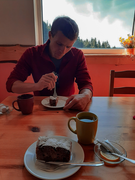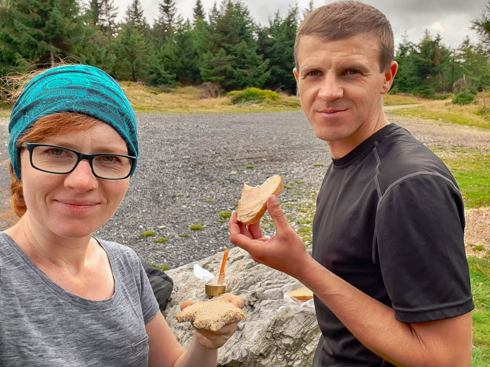Wszystkie te postoje gdzieś w krzakach, posiadówy na leżących pniach, ciepła herbata z termosu, pączek jedzony na krawężniku przed Biedrą w Ścinawce, naleśniki z Andrzejówki (taaak!), ciasto marchewkowe z Zygmuntówki (jeszcze większe taaak!), herbata w schronisku na Iglicznej i wiele, wiele innych.