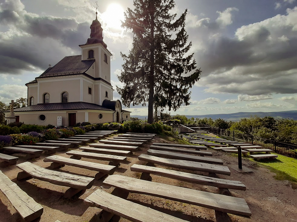 Po wyjściu z pstrokatej Nowej Rudy Góra Wszystkich Świętych jawi się jako lepszy świat – tu znajdziecie ciszę, spokój i kojącą zieleń dookoła. Tak zapamiętałam to miejsce – wokół żywego ducha, a panorama z wieży widokowej cieszy oczy. Ot, taki mały przystanek szczęścia w sercu Wzgórz Włodzickich.
