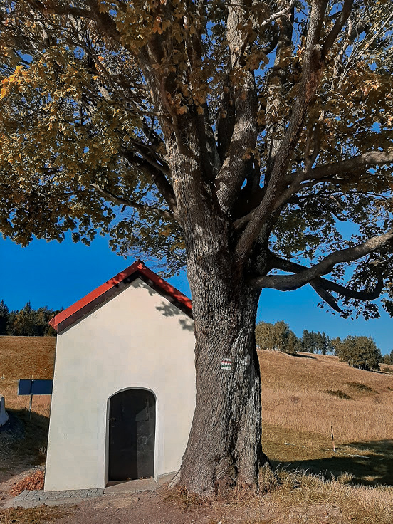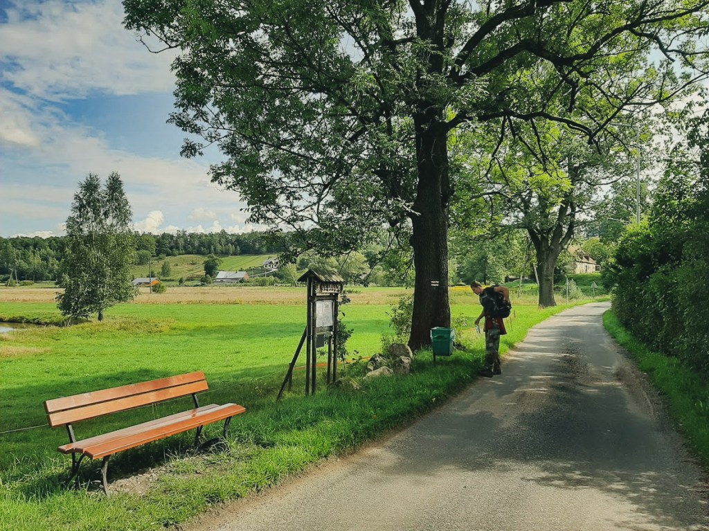 Ciężko mi w sumie wytłumaczyć, czemu mam jakiś dziwny sentyment do tego miejsca. Może z powodu uroczej kapliczki, która stoi tam w środku niczego? A może dlatego, bo kiedy doszliśmy tam pod wieczór, po dość intensywnym, 30-kilometrowym odcinku, okazało się, że nasza kwatera jest hen, daleko od szlaku i trzeba do niej iść jeszcze kawał drogi, tak ze 30 minut na pewno. A w końcówce będzie pod górę. To jest coś, czego nie chcecie przeżywać po całym dniu łażenia z plecakiem. Oj, zapamiętałam tę Puchaczówkę bardzo dobrze!