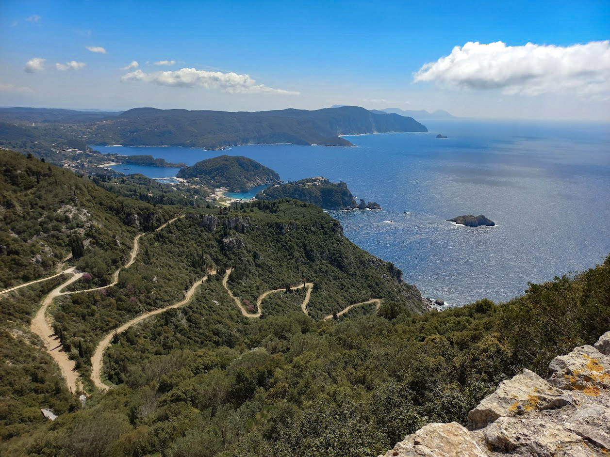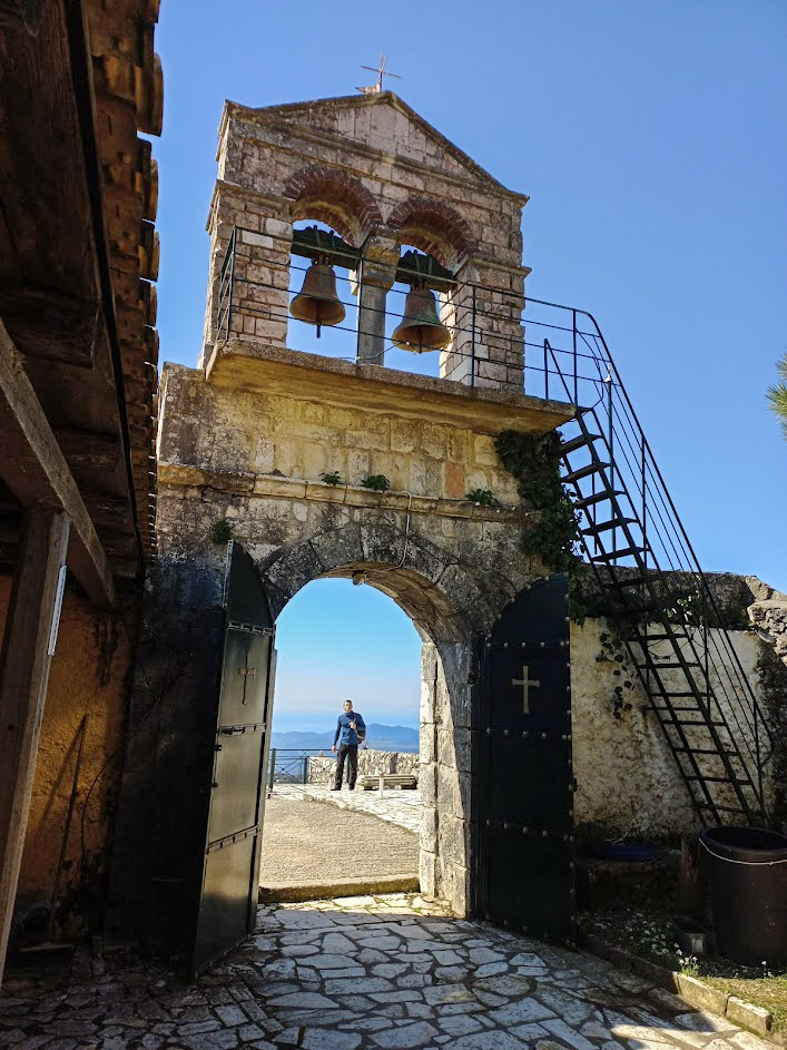 Na szczycie mieści się klasztor pochodzący z 19 wieku, jednak już wiele wieków wcześniej miejsce to było związane z kultem religijnym. Przechadzamy się po klasztornych zabudowaniach, ale to panoramy ze szczytu wzbudzają w nas prawdziwy zachwyt. Widać tu jak na dłoni albańskie, ośnieżone szczyty, a błękit Morza Jońskiego wygląda jak podkręcony w Photoshopie. Tymczasem to po prostu naturalne piękno Korfu!