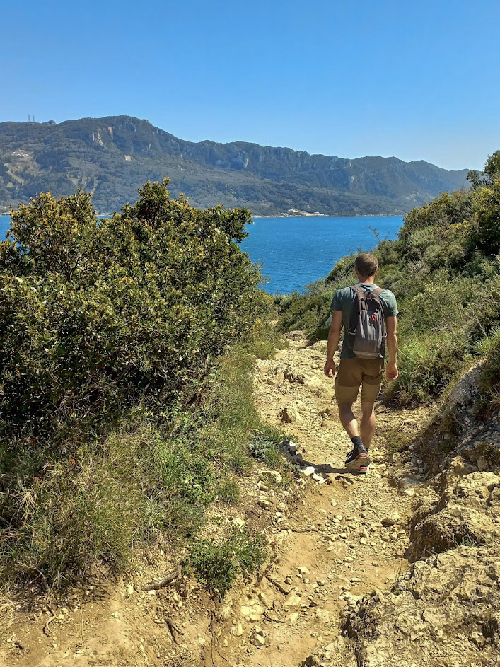 Po pokonaniu najbardziej skalistego fragmentu, dochodzimy do drogi gruntowej i wędrujemy Corfu Trail. To ponad 200 – kilometrowy znakowany szlak, który poprowadzony jest przez wyspę… i który trafił już na listę miliona szlaków, które chcę przejść.