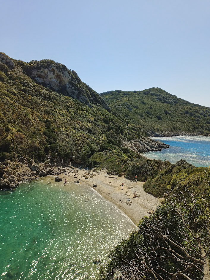 Naszą bazą na Korfu została Paleokastritsa (mieszkaliśmy w Apartamentach Korina, które można znaleźć na Bookingu). Wypożyczyliśmy też auto, bo uznaliśmy, że przed sezonem to najlepsze rozwiązanie (Imperial Car Rental, bezproblemowo, polecamy!). Nieco wiekowy Fiat Panda może i trochę krztusił się na licznych podjazdach, ale koniec końców wjechał tam, gdzie miał wjechać.