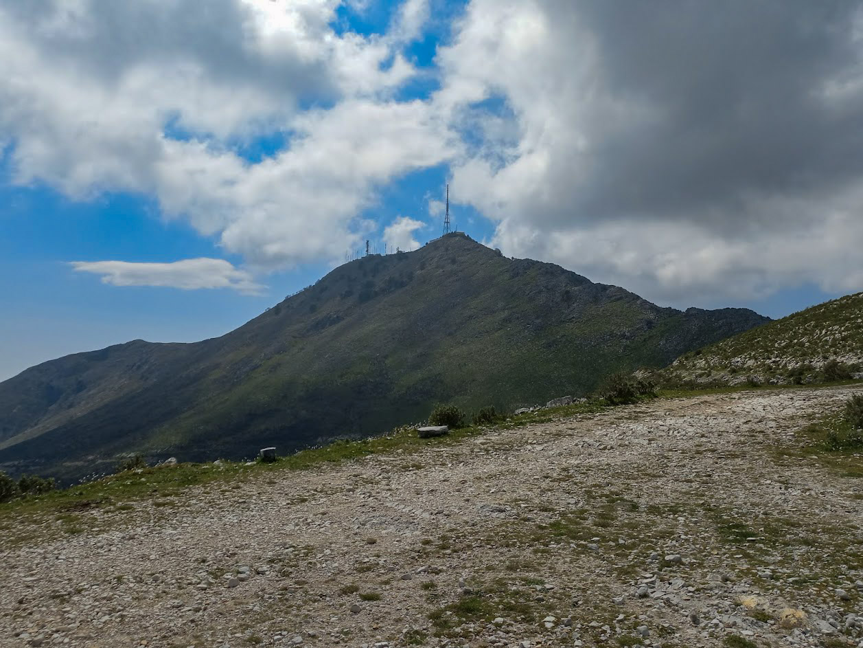 Z tym „wejściem” na szczyt to zresztą lekkie nadużycie, bo na Pantokratora można wjechać autem. Uznaliśmy jednak, że to rażące naruszenie mozolnego kodeksu, i zostawiliśmy auto jakieś 100 metrów pod szczytem (o tu: 39°44’50.9″N 19°51’55.6″E), aby mimo wszystko na wierzchołek wejść.